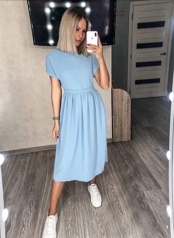 Размер 42,44,46,48,50,52 Длина от плеча:102-106 см Длина верхней полочки (от плеча до талии):42-44 см Длина рукава (от горловины):26-31 см Материал:Софт Однотонное платье миди с короткими рукавами – беспроигрышный вариант для летнего сезона. Такая модель смотрится одинаково красиво как с модельной обувью на каблучке, так и со спортивной обувью на низком ходу. 🚚Отправка новой почтой и укр почтой Обмен /возврат есть