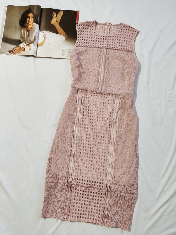 Элегантное нарядное платье cлегка приталенного силуэта, на спинке потайная молния Идеальное состояние! Нюдово-розовый цвет Бирки срезаны, верхний слой качественное эластичное кружево, внутри трикотажная подкладка На 48-50 р, ориентируйтесь на замеры: длина переда от плеча - 110 cм длина от плеча до талии- 42 см ПОГ- 48-52 см ПОТ - 41-45 см ПОБ- 52-60 см длина плеча- 10 см Возврат не предусмотрен