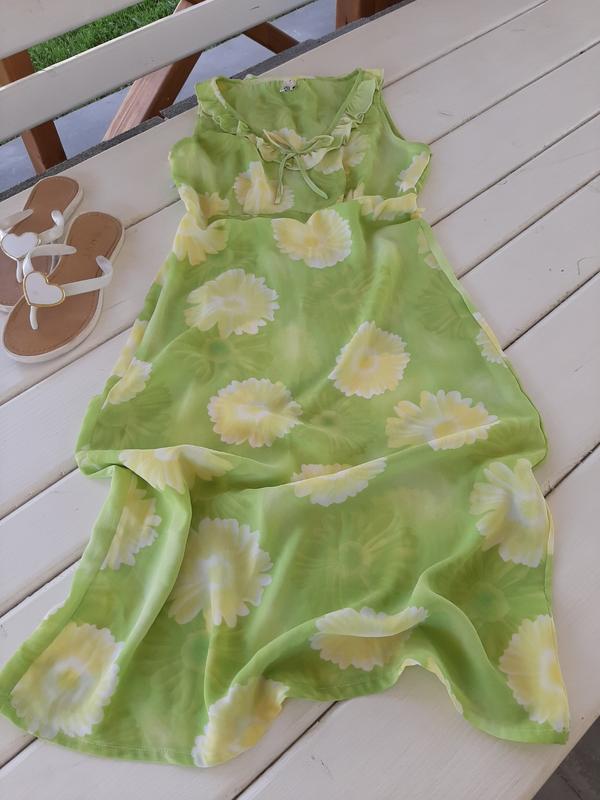 Классное летнее платье красивой расцветки,но есть один нюанс(заводской брак на последнем фото,что незаметпо при носке).Реальному покупателю скидка!