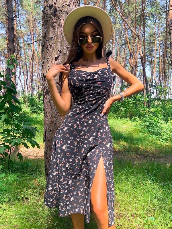 Летнее платье миди с разрезом