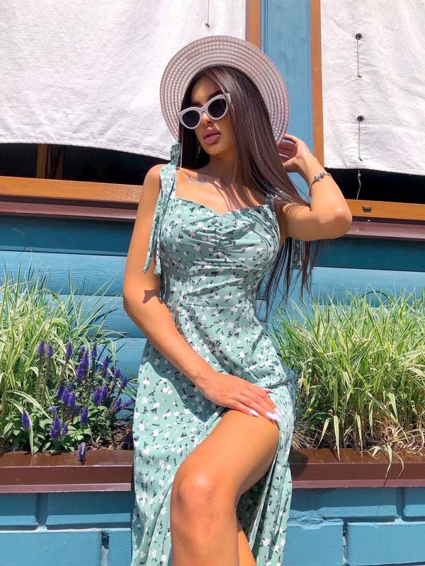 Летнее платье миди с разрезом