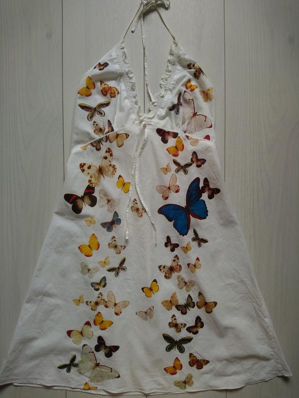 Плаття в дуже хорошому стані Матеріал котон тоненький Розмір L/XL Довжина від підмишок 72 см Півобсяг грудей 44 см і тягнеться до 54 см Півобсяг пояса 45 см