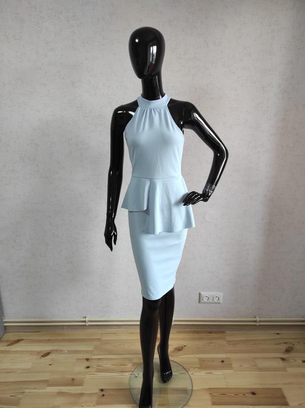 Красивое платье с баской нежно голубого цвета , красиво садится по фигуре. Состояние идеальное, только потерялась одна пуговица сзади на шее. Размер S. Хорошо тянется. Смотрите все мои объявления! Есть много других брендовых вещей. При покупке двух едениц доставка бесплатно!