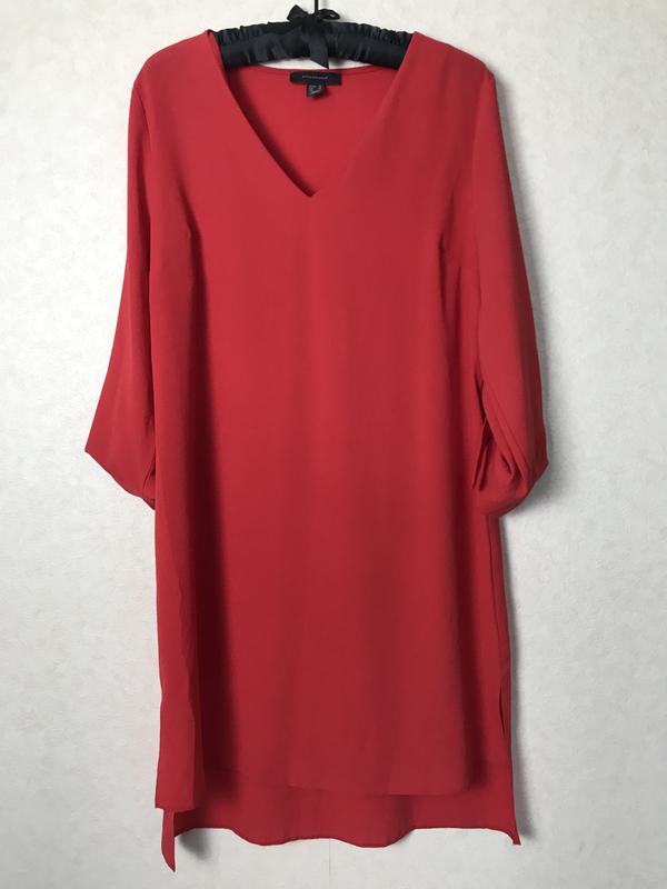 Легкое платье от Atmosphere. Практически прямой крой. Длина спереди 88см, сзади 97см. Ширина под рукавами 52,5см. Есть выточки. Бёдра 54см. Ткань тянется. Указан 14 размер