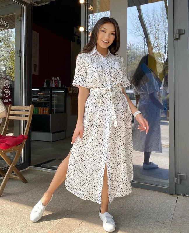 ✨Новинка✨ Платье в длине миди🤩 Модель am 024 Размер: 42-44, 46-48 Цвет: оливка в белый горошек, белый в чёрный горошек, бежевый в белый горошек Ткань: штапель 🌿Любимое платье в горошек, без которого невозможно представить себе лето. Выбирай оттенок который подходит тебе.🌿 Платье с разрезами, пояс пришит по бокам. Очень приятный к телу материал , высокое качество пошива 🔝