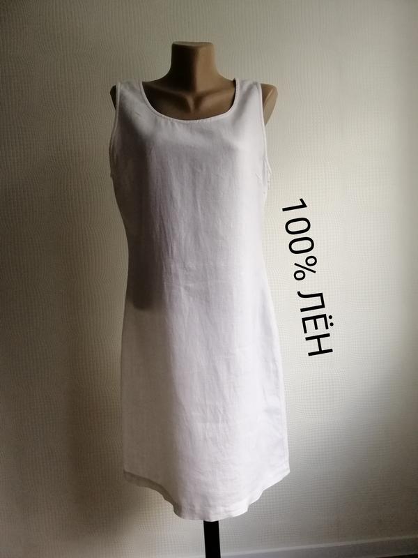 Красива, біла, лляна сукня/сарафан в ідеальному стані, є збоку блискавка. Розмір: М, L (по бірці 10,14, 40). 100 % льон. 100% оплата на картку.