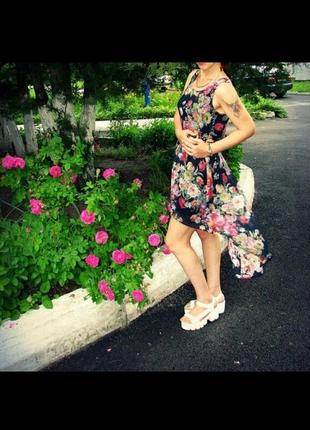 лёгкое шифоновое платье зад шлейфом талия резинка