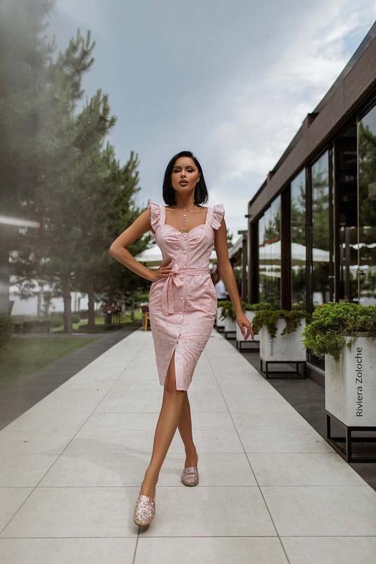 Хлопковое платье футляр с рукавами -крылышками в персиковом цвете Размер: S,M Ткань: прошва хлопковая подкладка Артикул: 5792