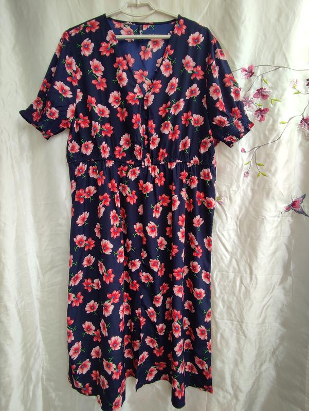 ПРЕКРАСНОЕ ПЛАТЬЕ В ЦВЕТЫ ПОГ 65 ПОТ 50(69) ПОБ 74 ДЛ 128 полиэстер
