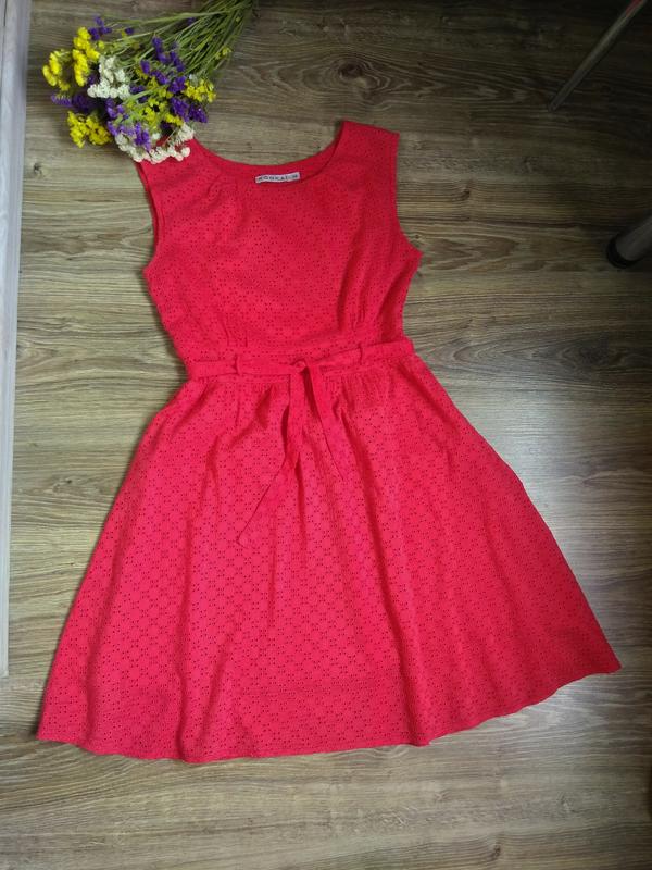 Миле легке платтячко в ідеальному стані. Одягнене на р. 46. Дл. 91, пог 45, піт 36, побіди вільно. Колір червоний, трохи блищить камера. Відправка будь поштою.
