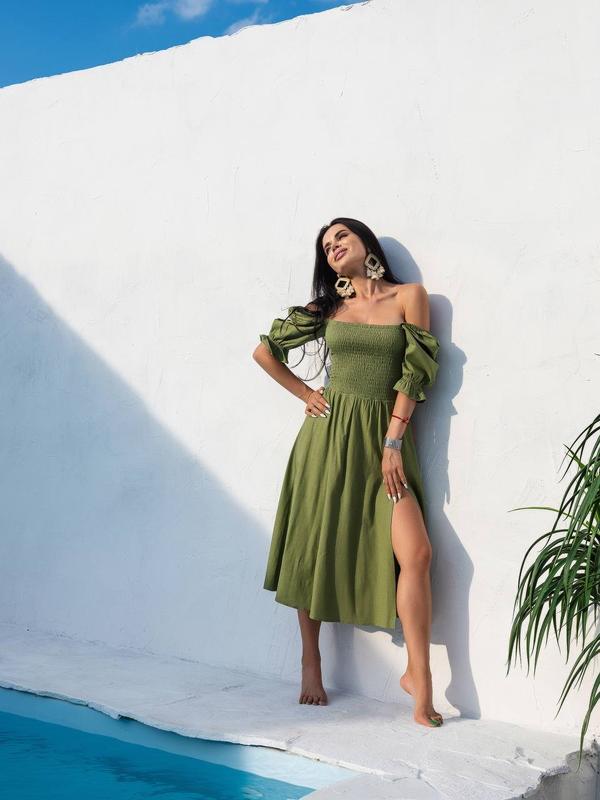 Платье летнее зелёное с разрезом