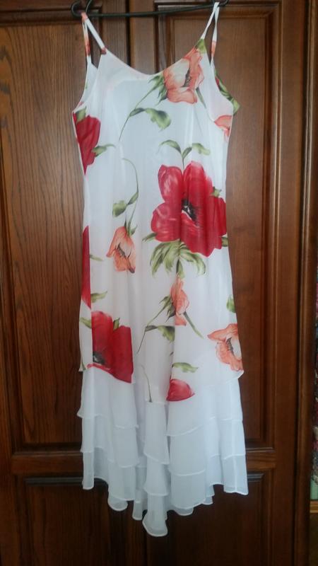 Нарядный шифоновый сарафан на шелковой подкладке. Тройной низ. потайной замок. Все в идеале. подойдет на 48 размер. Длж 140 (за счет шлейки, можно регулировать) Пог48+-2 Пот42-44 Поб56+_58