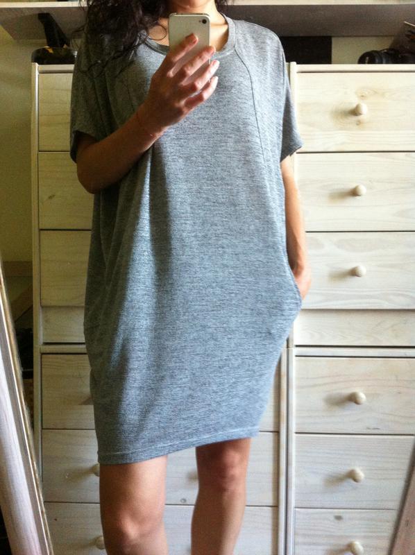 Серое миди платье оверсайз зауженое меланж с карманами от only 10-12-14-16