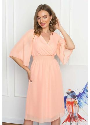 Легкое платье-миди «AZ-387» с ложным запахом, образовывающим V-образный вырез горловины. Силуэт приталенный. Горловина переда и спинки V-образная. Рукав втачной "крылышко". Отрезное по линии талии, талия со сборкой на нитку-резинку. Без застежки. Платье на трикотажной подкладке. Размер: 44,48,50 Цена: 640 грн + безкоштовна доставка 💥💥💥 Ткань: шифон (100% полиэстер); трикотажная подкладка. Длина изделия (в 44=S размере) от верхней точки плечевого шва - 107 см. + 0,7 см. к каждому последующему размеру. Длина рукава: 36 см. Рост модели: 170 см. Растяжимость: малая.