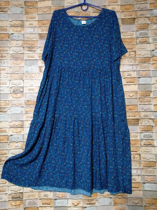 Классное платье ярусами с карманами из легкой струящейся штапельной ткани с принтом мильфлер. Размер 16-20,универсальный. ⭐ Длина 110,пог 57, бёдра свободные
