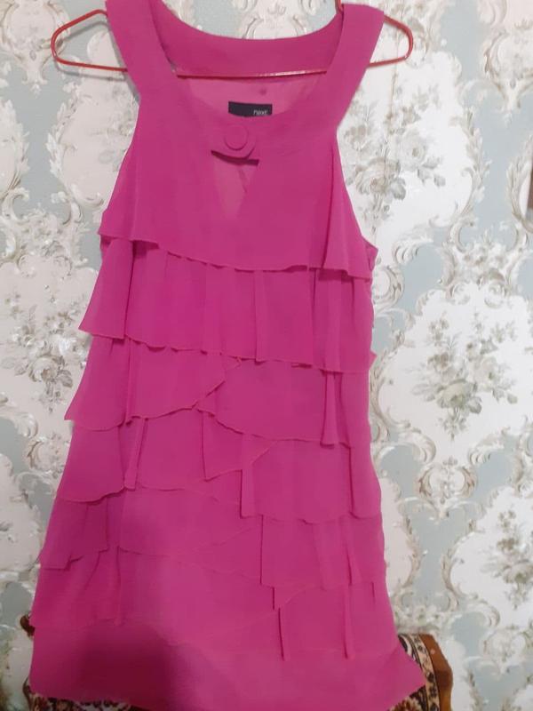 Очень красивое платье малинового цвета с рюшами сверху на пуговице.