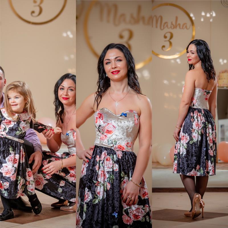 Продам платья сшитые под заказ, один раз одеты, детское на 3- года длина платья 66 см, рукава четвертной 30 см,600 гр для Мамы размер s, длина платья 85 см, обхват груди 70 см .