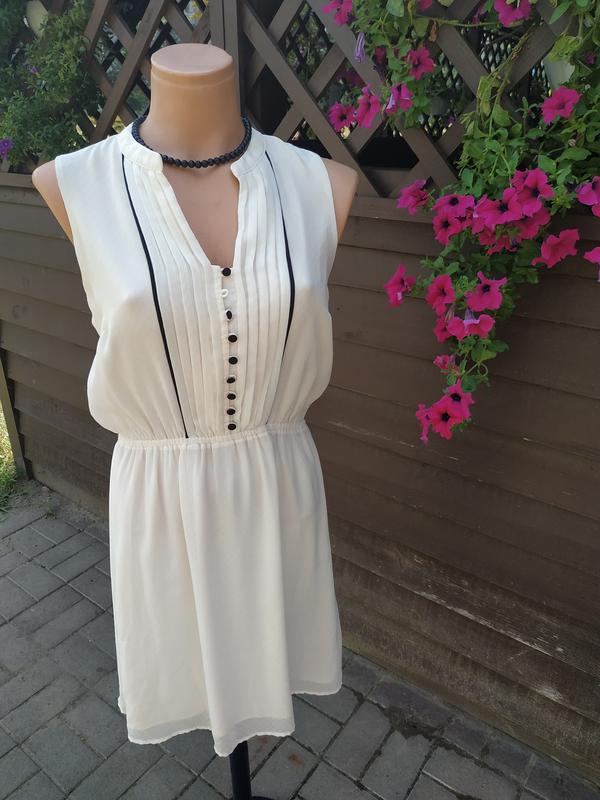Белое платье 👗 на резинке с черными пуговицами.