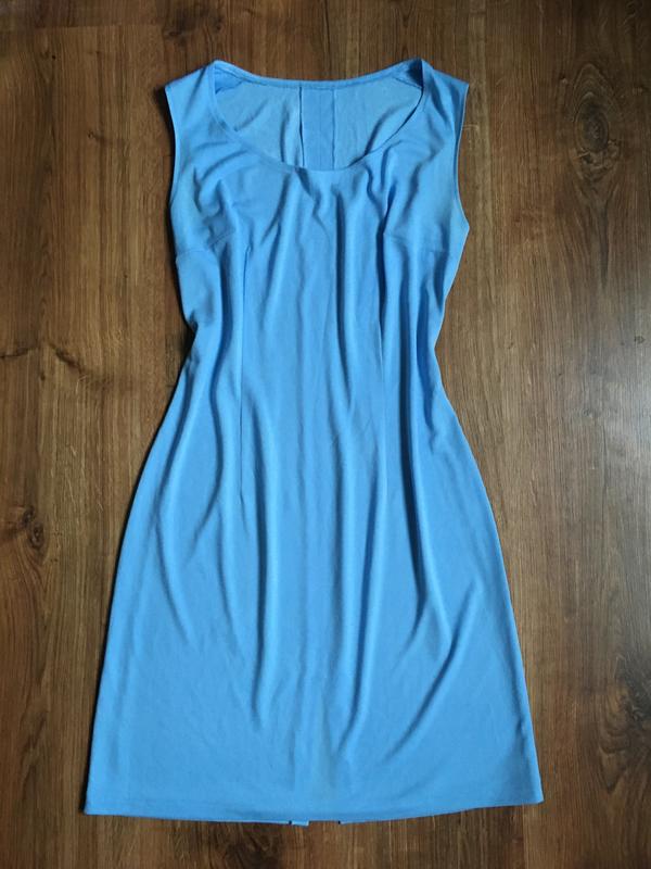 Плаття ніжного небесного кольору, приємне до тіла, гарно сидить по фігурі, бірки відсутні, орієнтуйтесь по замірах: Плечі 35 Пог 39 Пот 35 Поб 40 Довжина 85
