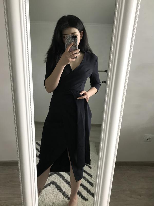 Вечірня сукня міді на запах. Красивий синій колір, тканина костюмна і трохи тягнеться. Гарно лягає по фігурі.