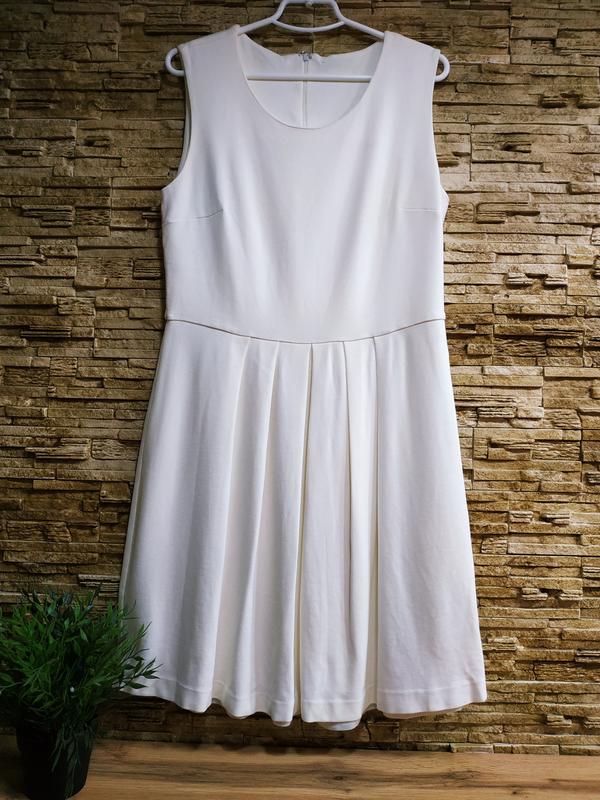 Приємний до тіла щільний плательный трикотаж ( не футболочный.). Тягнеться. Плаття йде з нейлоновою еластичною підкладкою.Білосніжне. Якість відмінна . Спідниця йде з м'якими складками. Базове. По спині блискавка. Відмінно комбінується з піджаками різного кольору.По спині блискавка. Ціна знижена .тому-що немає бирок. Без дефектів. ПОГ-48 ПІТ-42 ПОБІДИ-66 Довжина-94
