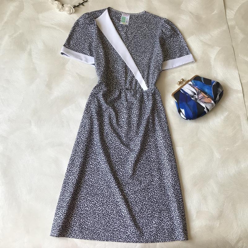 Вінтажна сукня St Michael з запахом на грудях ✔️Приталене ✔️Розмір L, довжина - 98 см, ПОГ - 47 см, ПОТ - 42 см ✔️Склад тканини: 100% поліестер ✔️Стан ідеальне