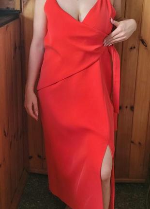 Платье от австралийского бренда C/MEO Collective, носилось пару раз. Необычный крой – вырез на бедре, декольте и спине, на запах. Сбоку завязывается на бант и есть замок. Цвет насыщенный морковный (смотрите последнее фото). Размер на бирке S (165/66A), по факту полномерная М. Длина от шлейки – 115 см ПОТ – 42 см ПОБ – 51 см Вырез на бедре – 35 см