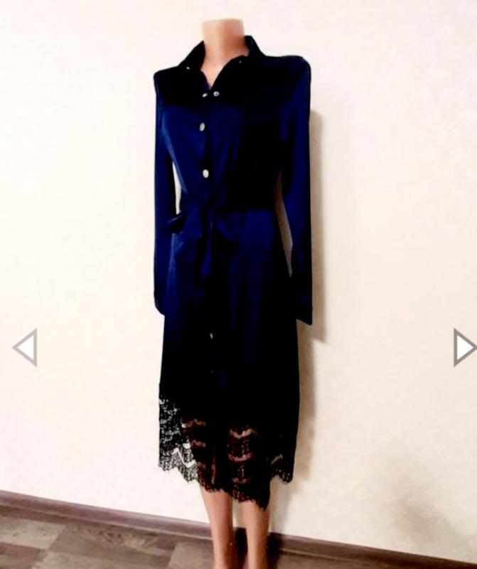 🔥Темно-синє плаття-сорочка міді Oasis. Дуже стильне ,атласне,якісне ,ексклюзивне плаття,низ-мереживний. Сукня застібається на кнопки,що теж дуууже зручно і класно ) Розмір:M(44-48) Виміри зроблені в спокійному стані (матеріал злегка тягнеться). Розмір М: Ширина плечей-38см Напівобхват грудей-46см Напівобхват талії-44см Напівобхват стегон-52 см Довжина рукава -60см Довжина виробу-111см Колір: Синій
