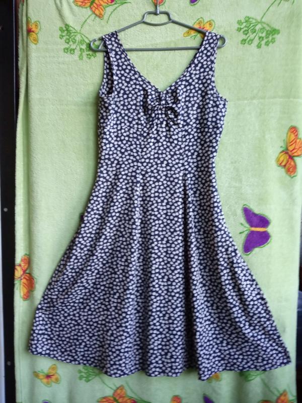Легкое расклешенное платье "тропиканка" от британского бренда St Michael. Выполнено из вискозной ткани с милым цветочным принтом. Стан - идеальный. Размер указанный UK 12. Замеры: Ш плеча-4,5 ПОГ-48 ПОТ-41 ПОБ-61 ШН-100. Дл по спинке от плеча - 108 от выреза -90 см. Пр-во Британия.