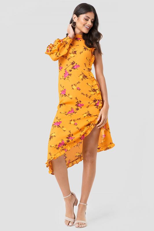 Ассиметричное платье миди с оборками в цветочный принт Na-kd Размер 34/XS-S Цена 400 грн