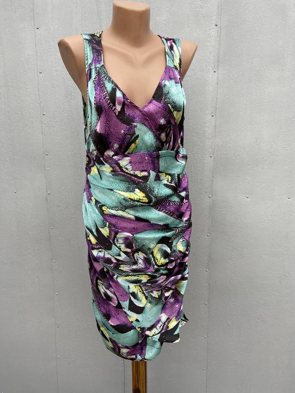 В идеальном состоянии. Размер указан 14. Сбоку на молнии. Подойдет на размер М. От плеча до плеча – 28 см Полуокружность груди – 45 см Полуокружность талии – 40 см Полуокружность бедер – 45 см Длина – 99 см