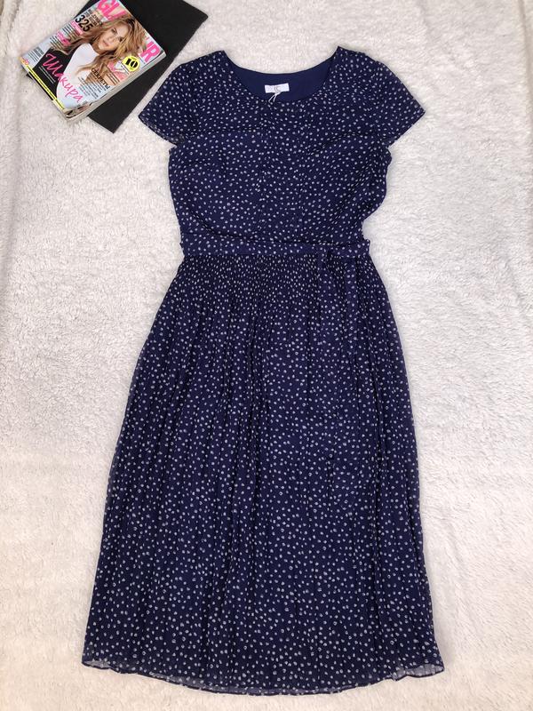 Стильное Платье длины миди , актуального фасона и принта . Низ плиссе. Талия на пояске. Сбоку змейка, на подкладке. Новое. Замеры Длина-108 П.о.г-40 П.о.т-32{не тянется} Рукав-13