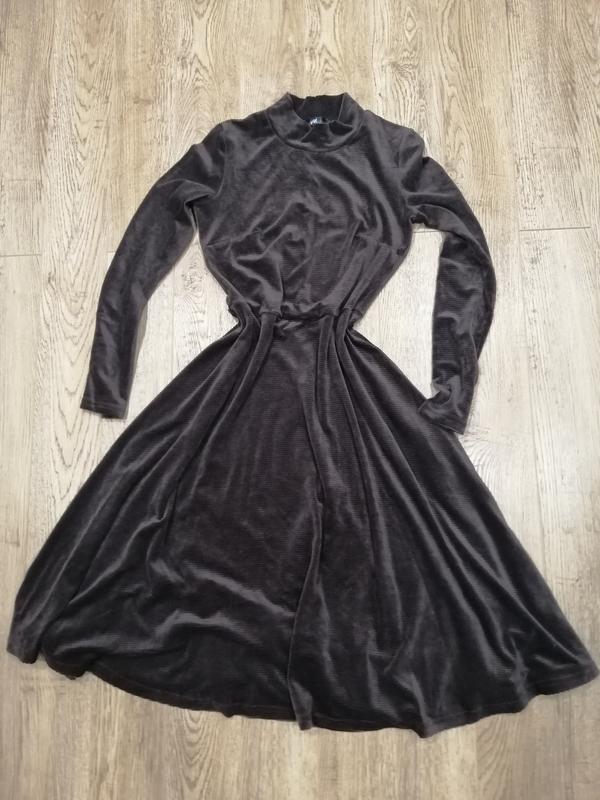 Платье-миди шоколадного цвета в рубчик, с длинным рукавом. Размер S, M, L