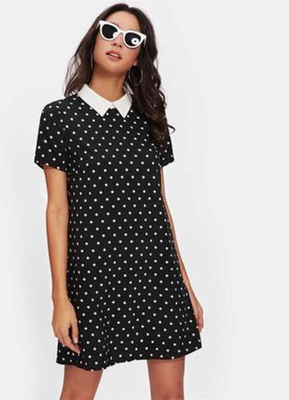 Плаття в горошок Phase Eight з білим коміром і бічними кишенями Довжина - 87 див. Груди - 43 див. Плечі див. - 36 Стегна див. - 48