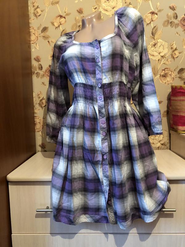 Платье рубашка в клетку на пуговицах миди