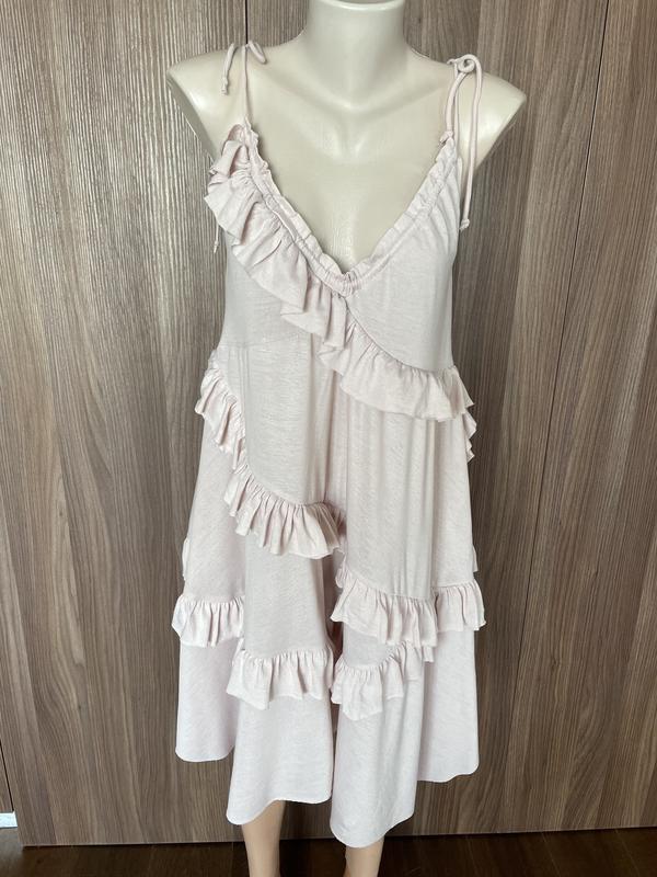 Нюдовый трикотажный сарафан в стиле бохо. В отличном состоянии.