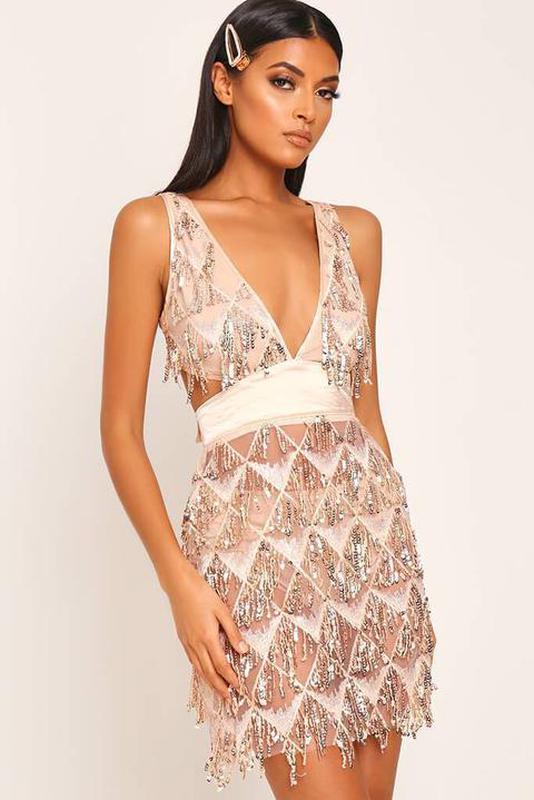 👗золотое платье миди в пайетках с вырезами/блестящее полупрозрачное бронзовое платье с де...