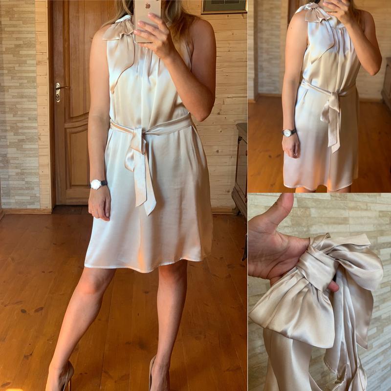 Неймовірна сукня з шовку з поясом .Колір шампань .Шовк з красивим переливом .Є мінімальні Сліди шкарпетки .