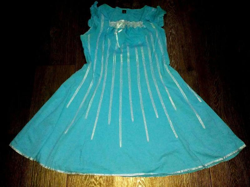 Голубой сарафан трикотаж размер 50 длина 86см.грудь 50 талия 44 ,бедра от 54 и до 62 см.Ткань хлопок приятная к телу свободный росклешонный к-рой скроет любые бедра и подчеркнет грудь.