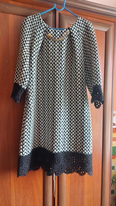 Женское платье 50 размера с кружевом.Ткань 100%,котон. ОГ55. талия 50, бедра55.Длина 94.Рукав реглан, 3/4. Скрытые карманы.