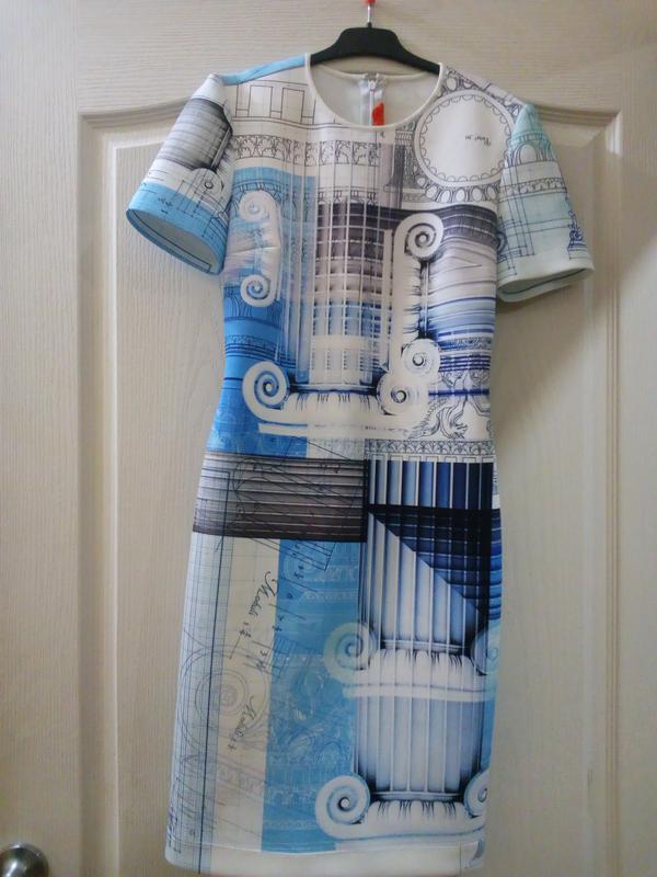 Платье, сделано в Америке, размер S 41см, тянется до 50, длина 90см, очень интересное по рисунку и ткани(плотненькое, мягкое и не жаркое при этом за счет того, что в составе верха есть полиуретан, а внутри к телу спандекс)