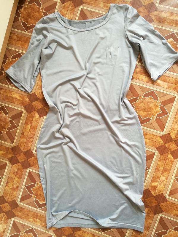 Седает отлично по фигуре, ткань наверняка мыкромасло, масло, мягкая приятная к телу, слегка переливается, цвет зависит от освещения, интересный серо-голубой. Под белые кроссовки смотрится классно! Есть маленькие катышки в районе бедра от сумки (см. фото), больше недостатков нет, затяжек нет. Длина 97см, ПОГ = 45см, ПОБ = 49 см. замеры выполнены в нерастянутом виде, а платье очень хорошо тянется. Рукав по локоть.