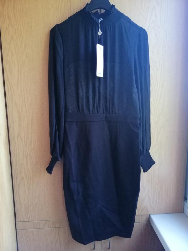 Черное платье по фигуре vero moda, воротник под горло, рукав прозрачный, плотный топ в груди не светится , низ плотный, стрейчевый, хорошо тянется. Длина 101см, рукав 63см,пог 50см,пот 35см,поб 46см тянется до 52см.