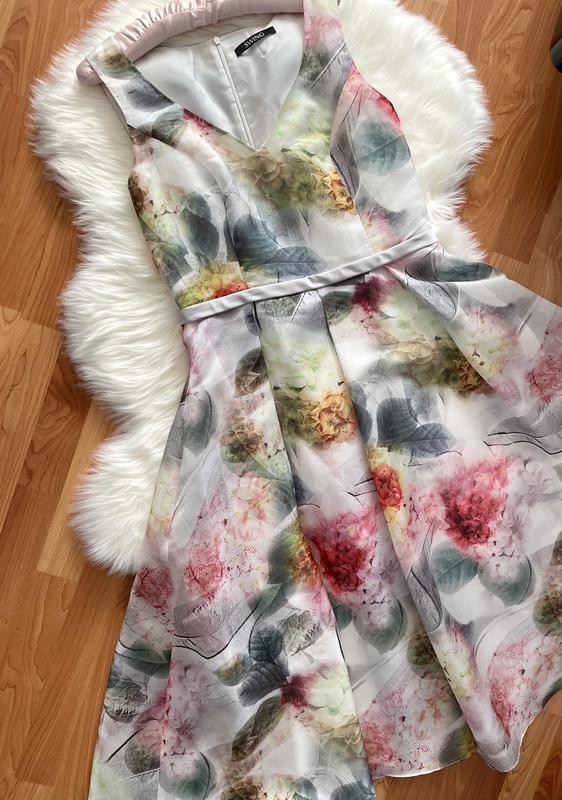 Сток как новое шикарное невесомое пышное платье миди в цветы размер хл