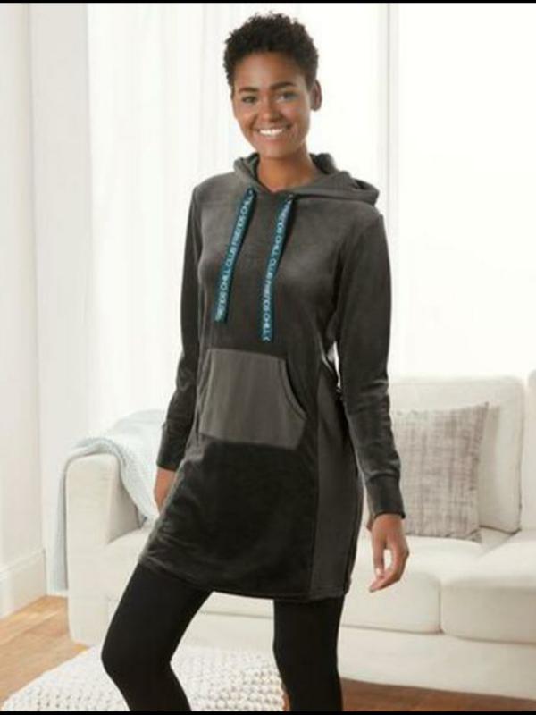 LIDL - европейское качество! Шикарное велюровое платье-худи в спортивном стиле premium качества, ESMARA, Германия ♡ Стильная модель из мягкого велюра, с капюшоном и карманом кенгуру. ♡Рукава на кофте на манжетах с резинкой. ♡ Материал эластичный, мягкий и приятный к телу. ♡Сертифицировано международной системой тестирования текстильной одежды Oeko-Tex Standard 100 - текстиль, которому можно доверять. Состав: 95% полиэстр, 5% эластан Евро М 42/44, наш 46/48