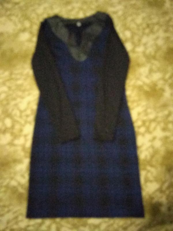 Теплое платье в клетку. Горловина отделана материалом под кожу. Состояние новое (одетая один раз)