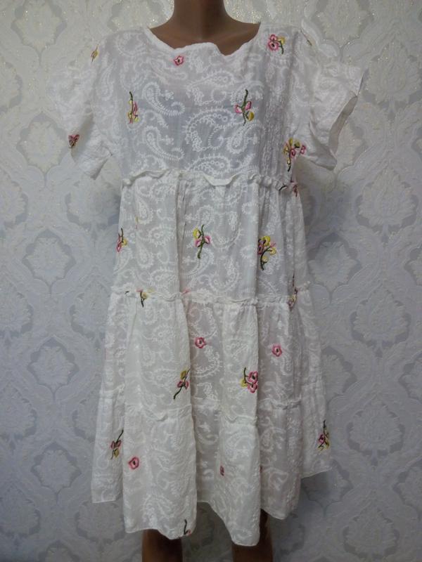 Поклонные девочки! К праздникам на весь товар огромные скидки или моя доставка по любому поводу!!!! Спешите, пожалуйста. Все лучшее, стильное и красивое для Вас!! Стильное, легкое, воздушное платье "Пироченое" супер стильное платье прошва.Бавна. Тканина натуральна. Красивая вышивка. Платье дорого, так как натуральная ткань. Так как сейчас не сезон доставляет огромную скидку. Милые дамы, красавицы Мои, спешите.Речь реально крутая. Фасон суперовый. Под любой стиль и образ. Обувь подходит любая. На размер Оверсайз. М-Л. Л. Все замеры по запросу. Длина от плеча-93, ширина от подмышки до подмышки-51, талия и бедра универсал