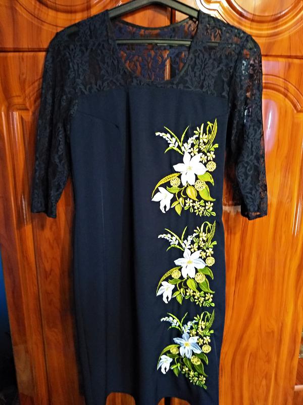 вишита сукня,абсолютно нова,темно -синього кольору,пог-44см,довжина 95см,верх-гіпюр,тканина трохи стрейчева