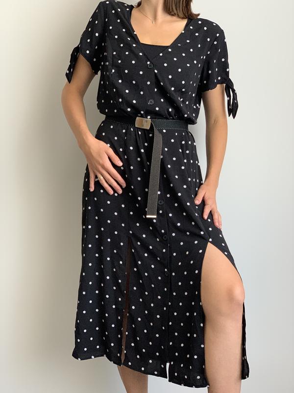 платье чорное миди в горошек с розрезами h&m плаття чорне міді в горошок Розмір 50 (XL) Пог 55 Пот 52 Поб 62 Довжина 125