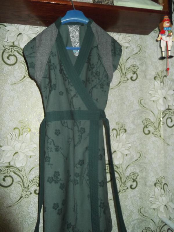Платье-халат темно-зеленого цвета в отличном состоянии, очень интересное, отлично подойдет для работы и в офис